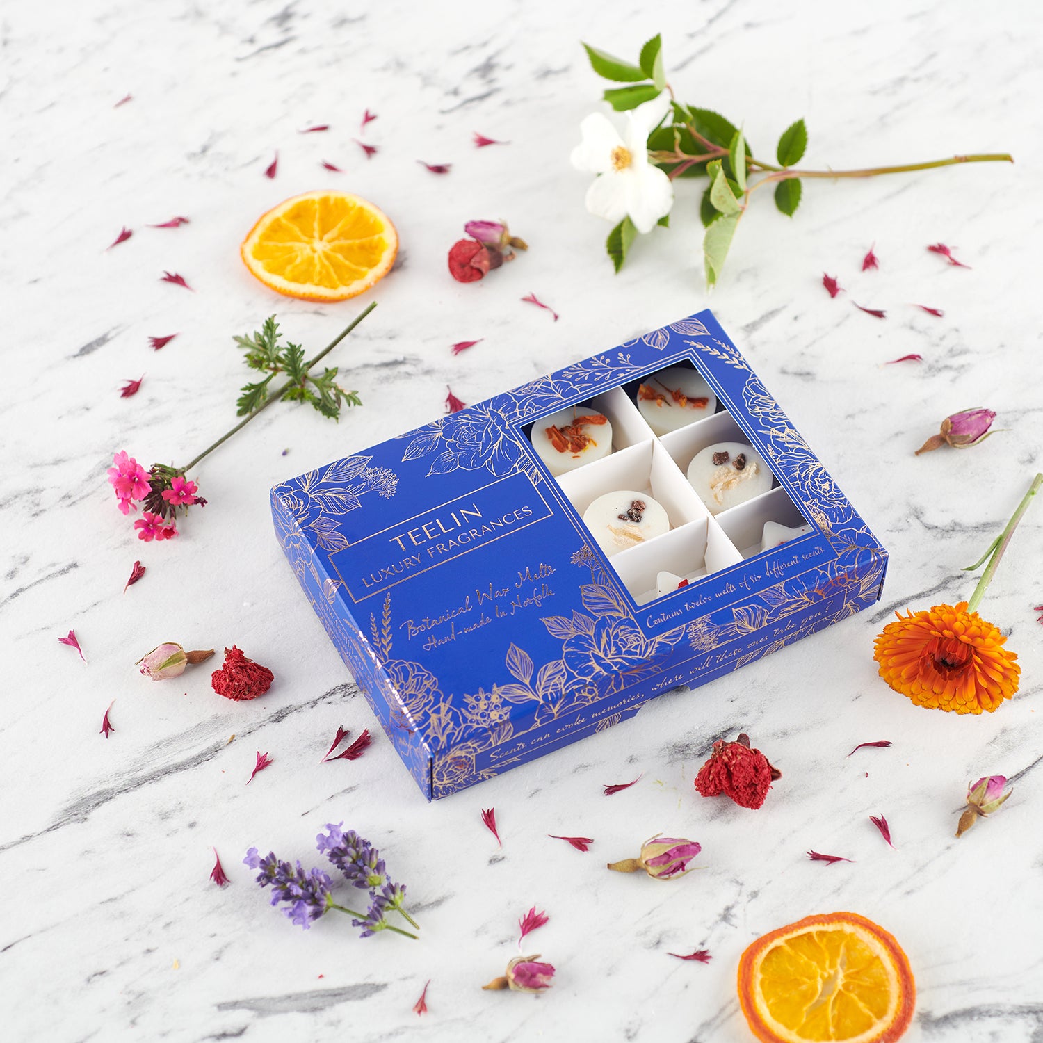 At Teelin, we've worked hard to create wax melts that are different from the rest. All of our wax melts are lovingly handmade in small batches by our family using only the finest cruelty-free and responsibly-sourced ingredients. We blend long-lasting fragrances with a sustainable coconut and rapeseed wax and specially-selected botanicals in an environmentally-friendly production process.